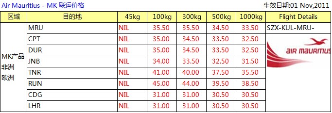 AK亞洲航線(xiàn)11月中東非洲最新國(guó)際空運(yùn)價(jià)格查詢(xún),深圳大智通第一時(shí)間了解國(guó)際空運(yùn)價(jià)格行情,讓您不必虧在運(yùn)費(fèi)上。AK 深圳始發(fā) KUL聯(lián)運(yùn)中轉(zhuǎn)中東非洲優(yōu)惠運(yùn)價(jià),以下為深圳頭程AK航班,KUL接駁EY GF SA MK,一單到底無(wú)需換單!訂艙熱線(xiàn):400-0755-028