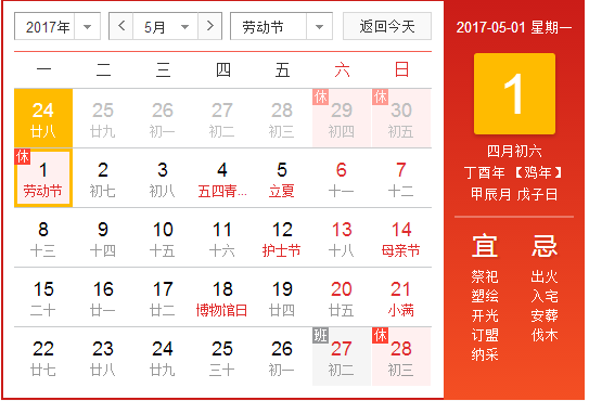 一、2017年五一勞動節(jié)放假安排: