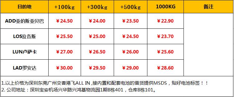 香港到中東、非洲專線空運價格:                                 有效期:2018 .7 起