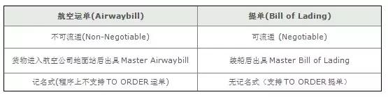 六、國際航空運單和海運提單的區(qū)別