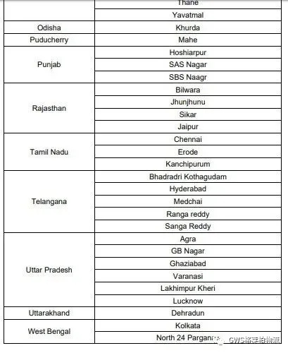 ▼印度官方通知:75個封城列表,包含新德里、孟買、清奈等眾多港口城市