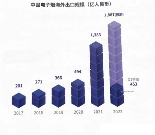 出口方面,預計2022年全年電子煙出口總額將達到1867億人民幣,預計增長率達35%。
