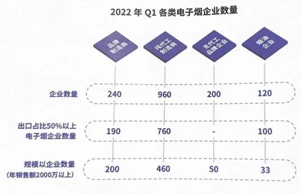 當前電子煙制造及品牌企業(yè)超過1500家,超過7成企業(yè)以產(chǎn)品出口海外為主。電子煙供應鏈及周邊服務企業(yè)近10萬家。