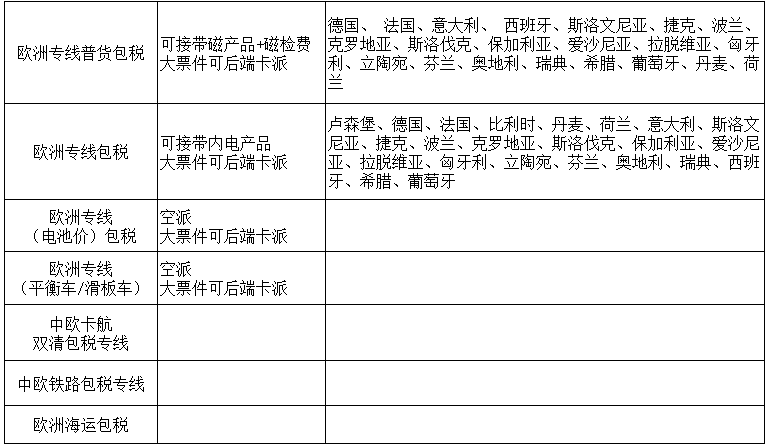 其他渠道:中歐卡航雙清包稅專線、歐洲海運(yùn)包稅