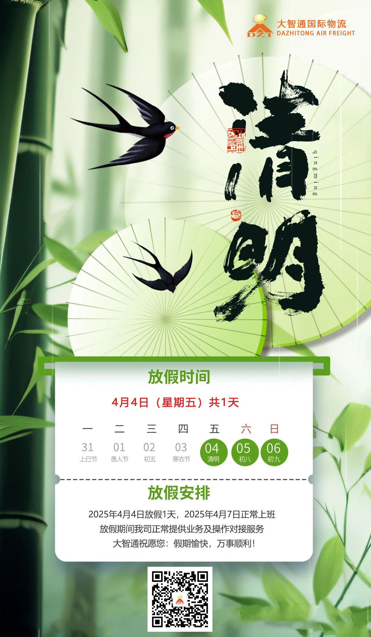 4月5日(周六):正常收發(fā)貨;